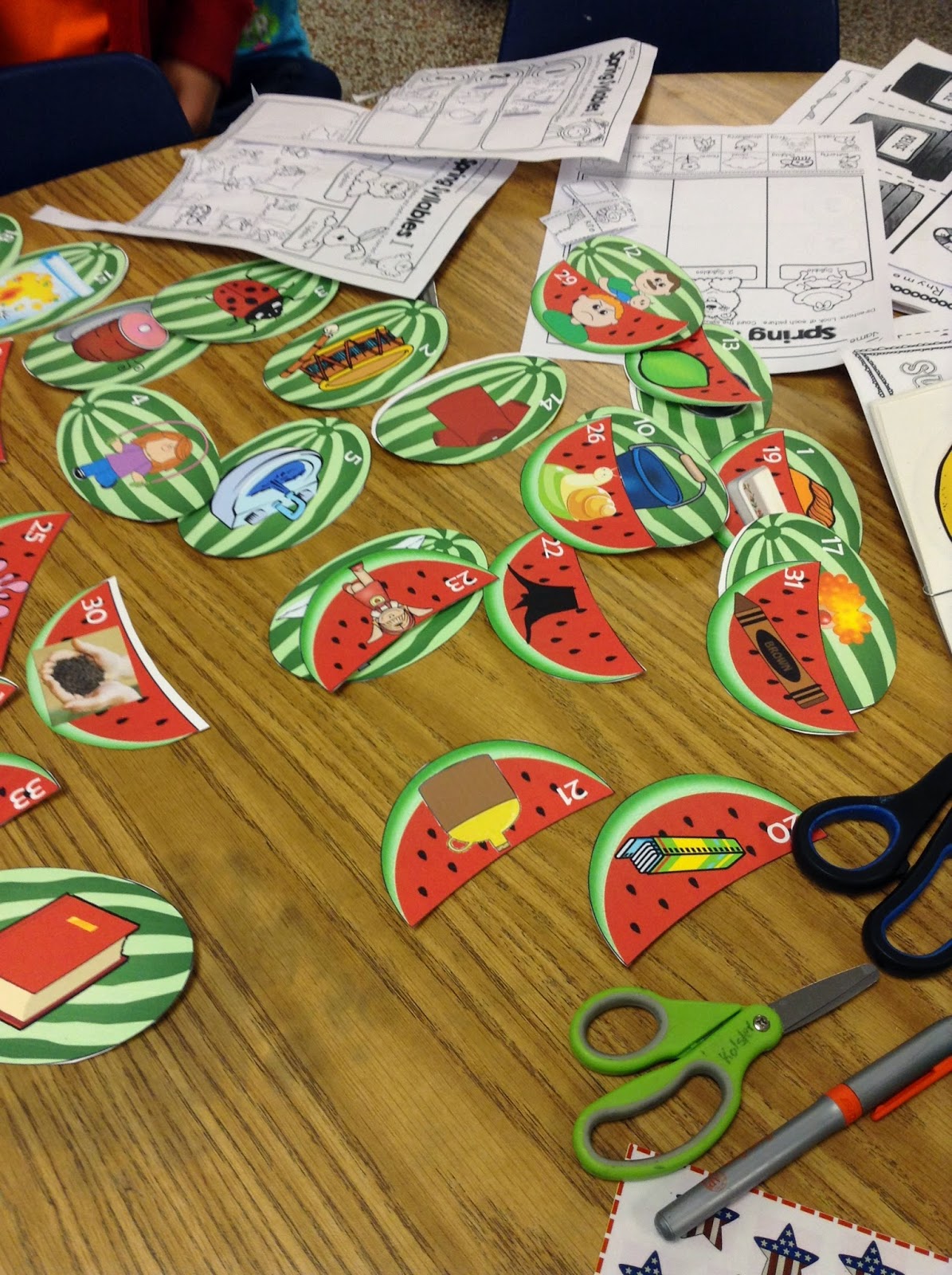 This pack has 5 different activities for your students to practice matching rhyming words. For now, I chose to print and use the strawberry, watermelon and lemon packs. They work well for this time of the year. You can click their picture to purchase just that pack or the bundle picture above for the whole bundle! The whole bundle is a HUGE DEAL! For only $4 you get 5 rhyme packs!!! They are each $2.75 separately!